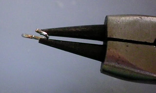 5. If you are using star beads (like the czech glass) instead of charms (like the metal stars), create a bead charm by threading the bead on to a head pin, gripping the pin with your jewelry pliers, and twisting the head pin wire around the jewelry pliers to form a loop. Trim the extra wire and repeat for the second bead.